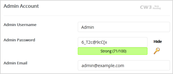 - Admin Email: Your e-mail address. (Useful for administrator account password reset, notification, etc.)