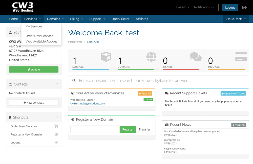 There will also be a login to Cpanel button that will launch Cpanel in a new browser window.