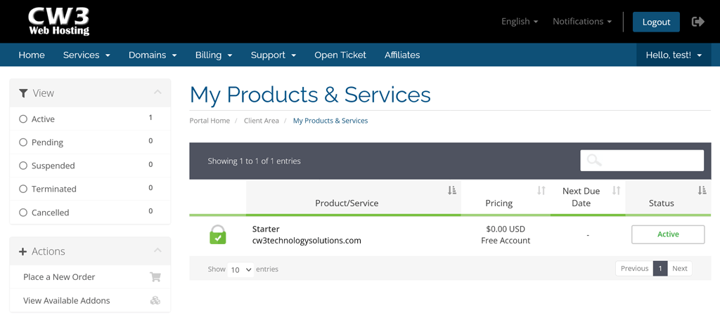 Once in click on services / my services and a list of products will display with a button on the right side for each.