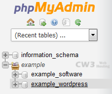 3. In left side-bar, Click on the expand button to expand the database like "example".