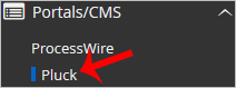 4. On the left side of your screen, you should locate the Portal/CMS category. Click on it and then click on the Pluck link that will appear.