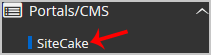 4. On the left side of your screen, you should locate the Portal/CMS category. Click on it and then click on the SiteCake link that will appear.